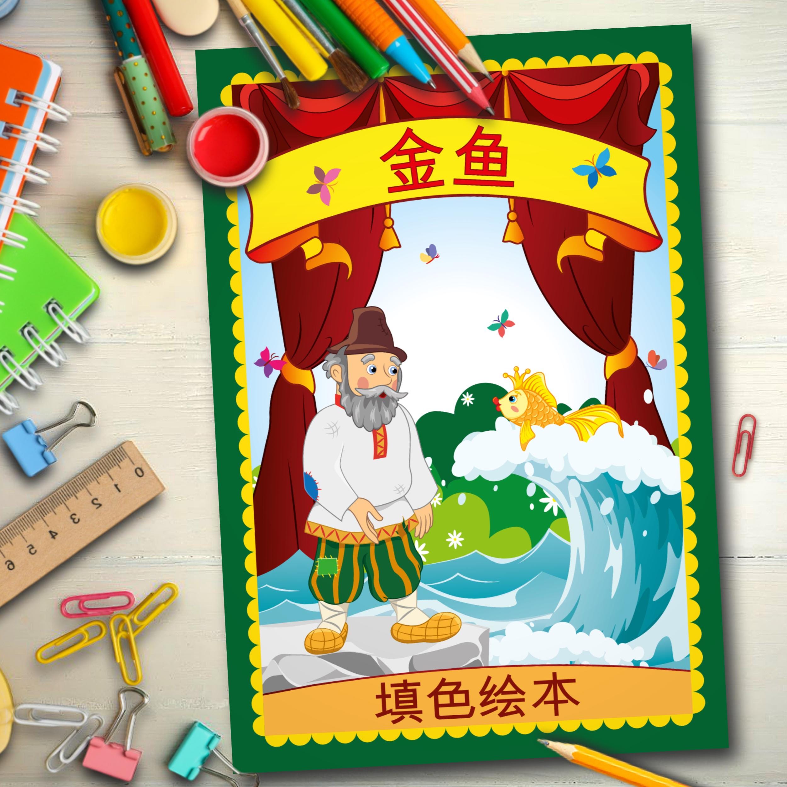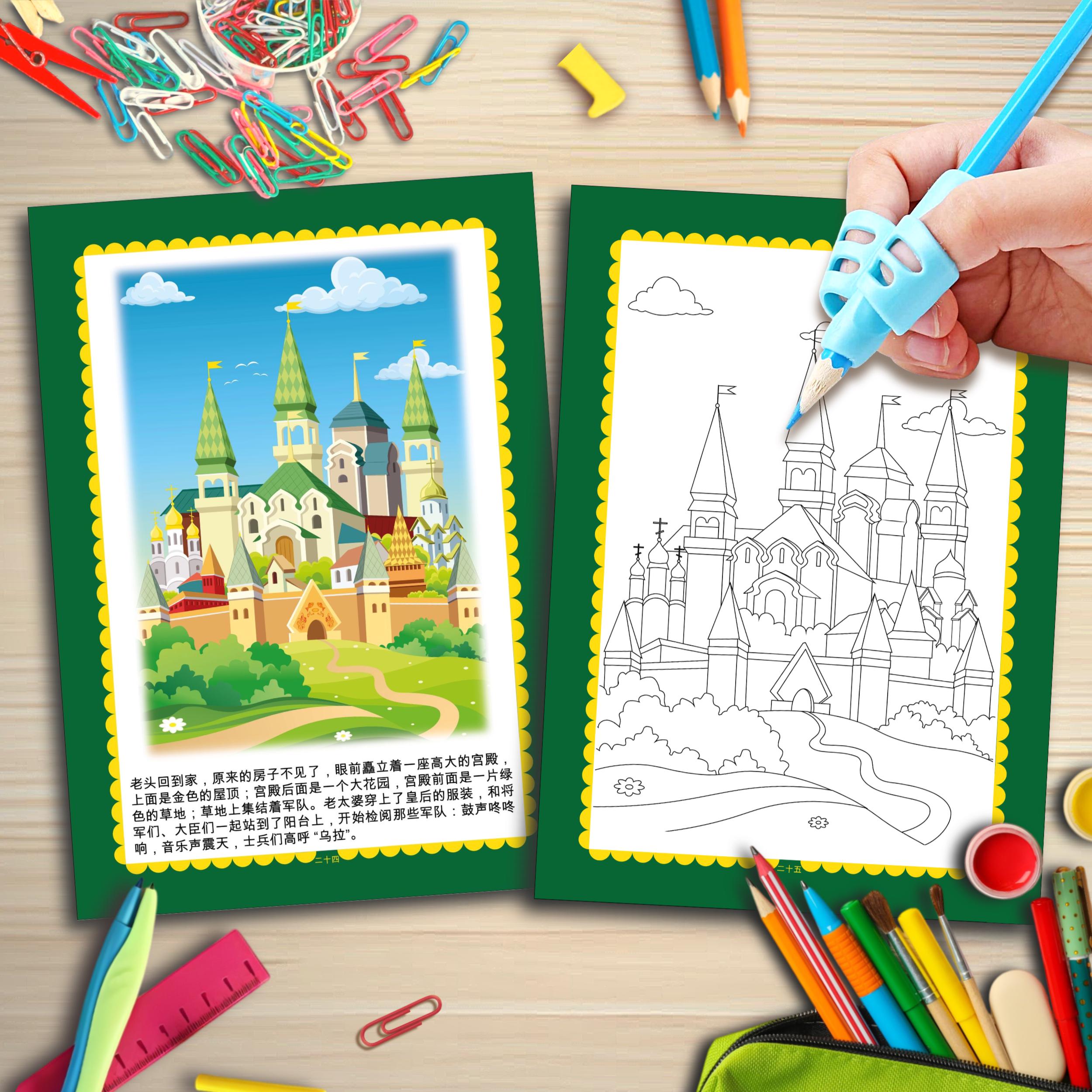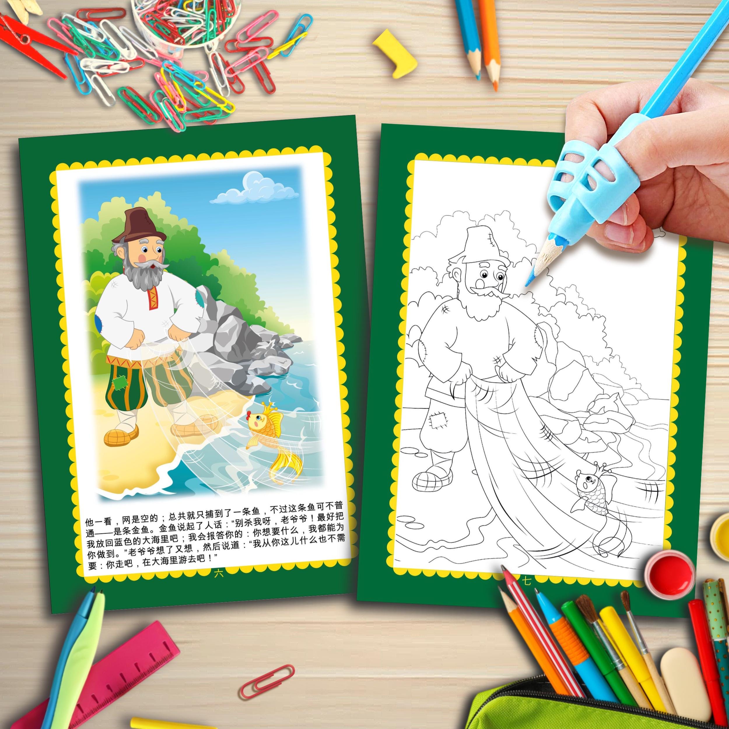The Golden Fish — Coloring Book based on the Russian Folk Tale (PDF) | Printable | Children's Activity | In Chinese | Original Illustrations