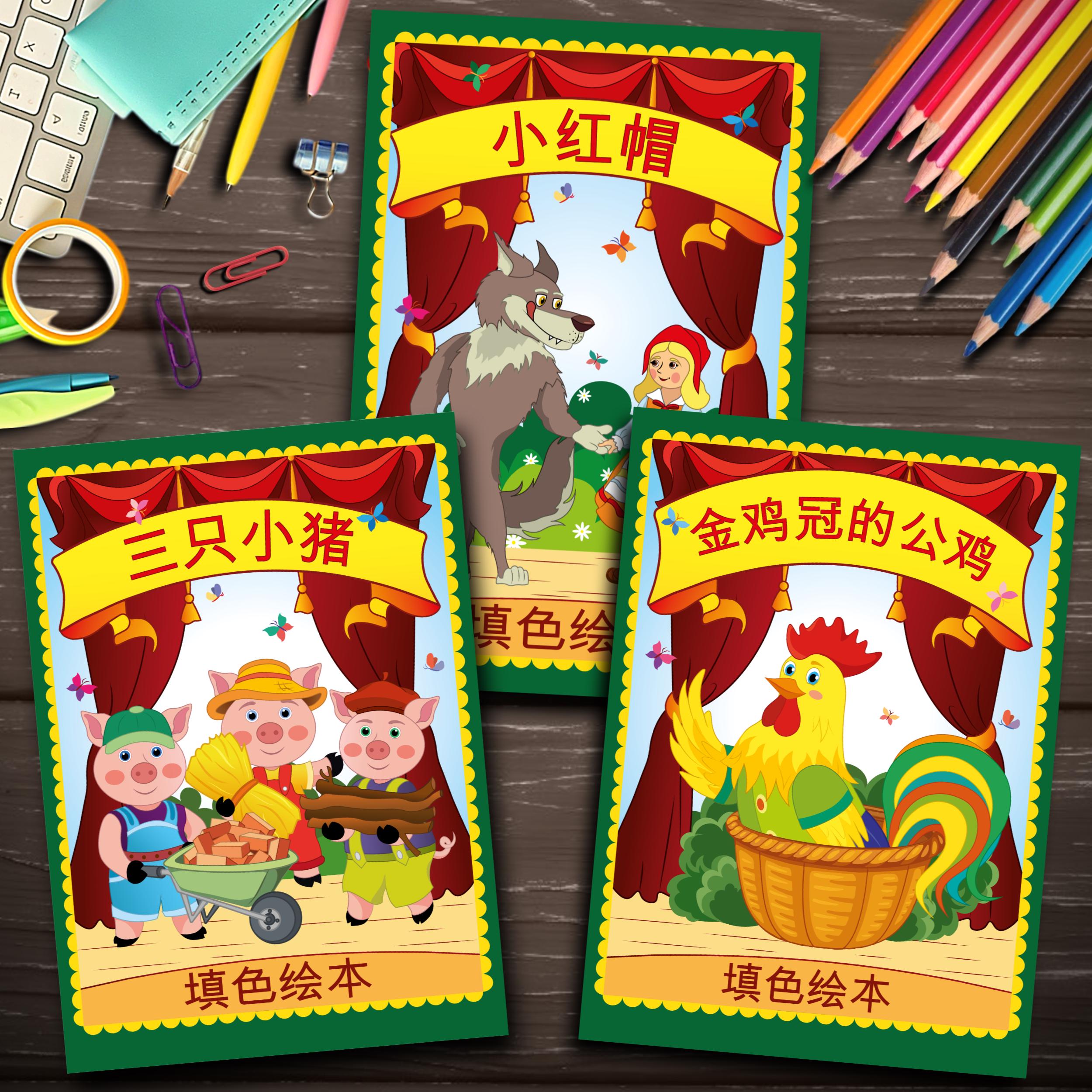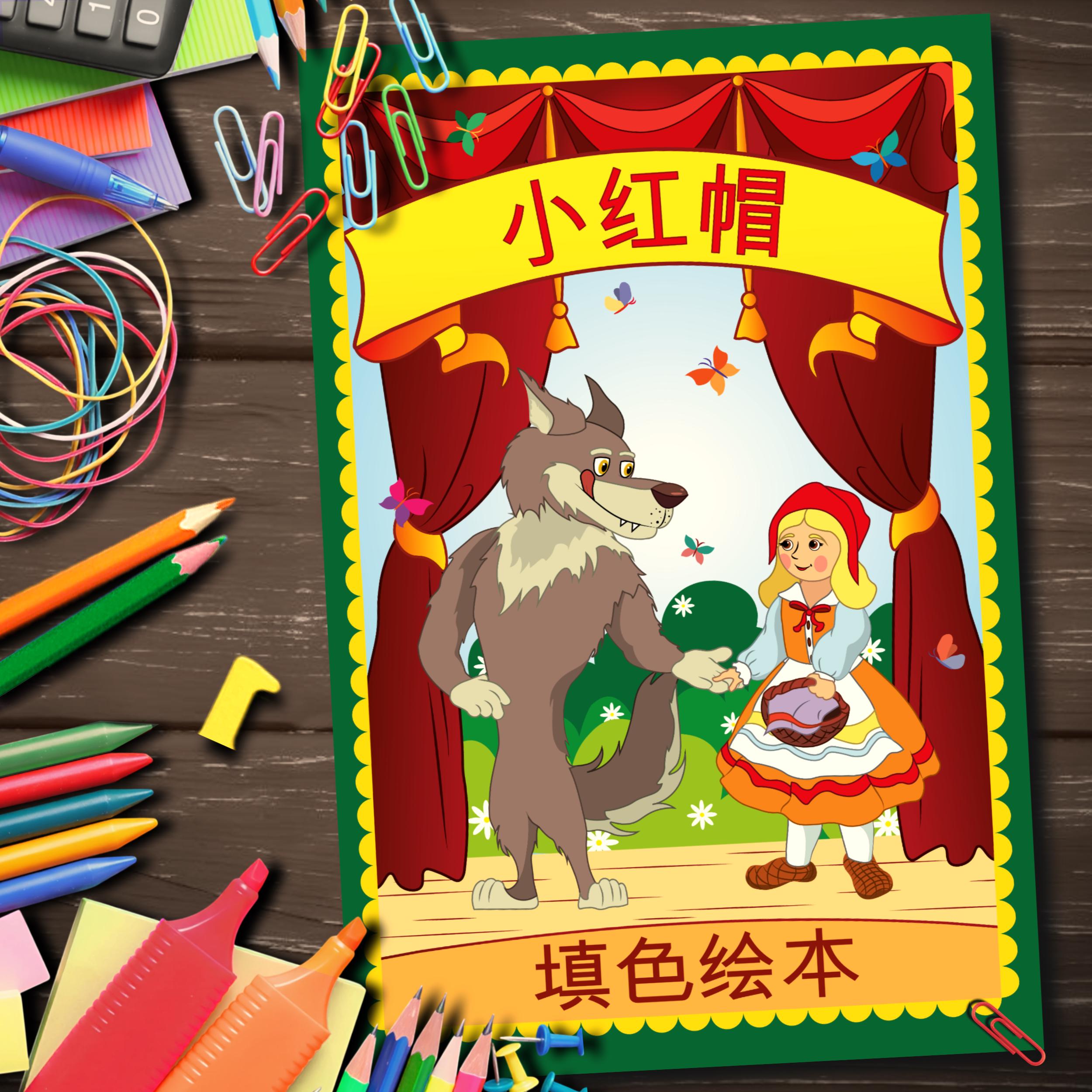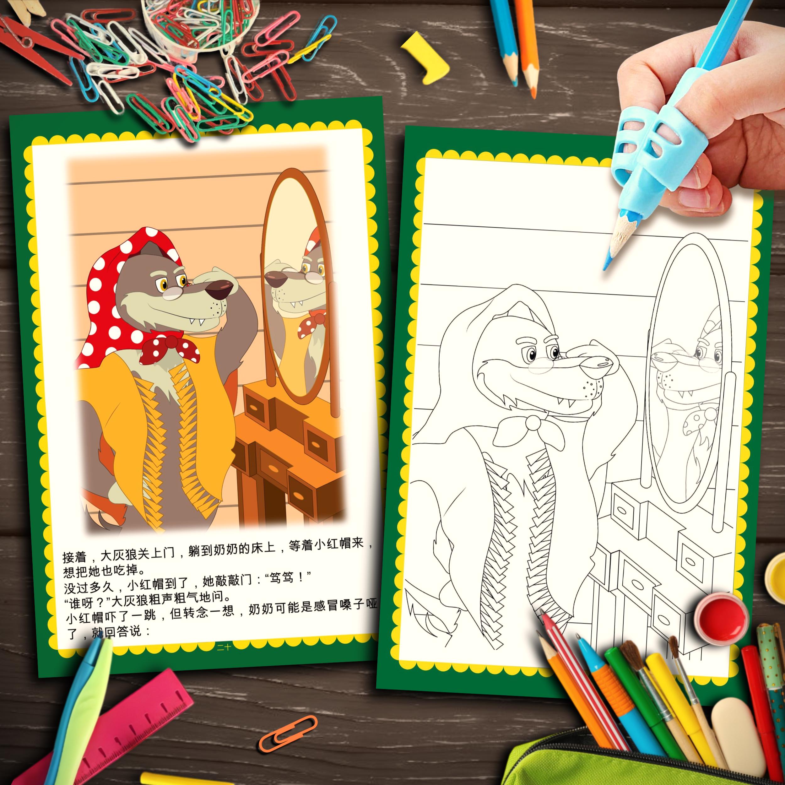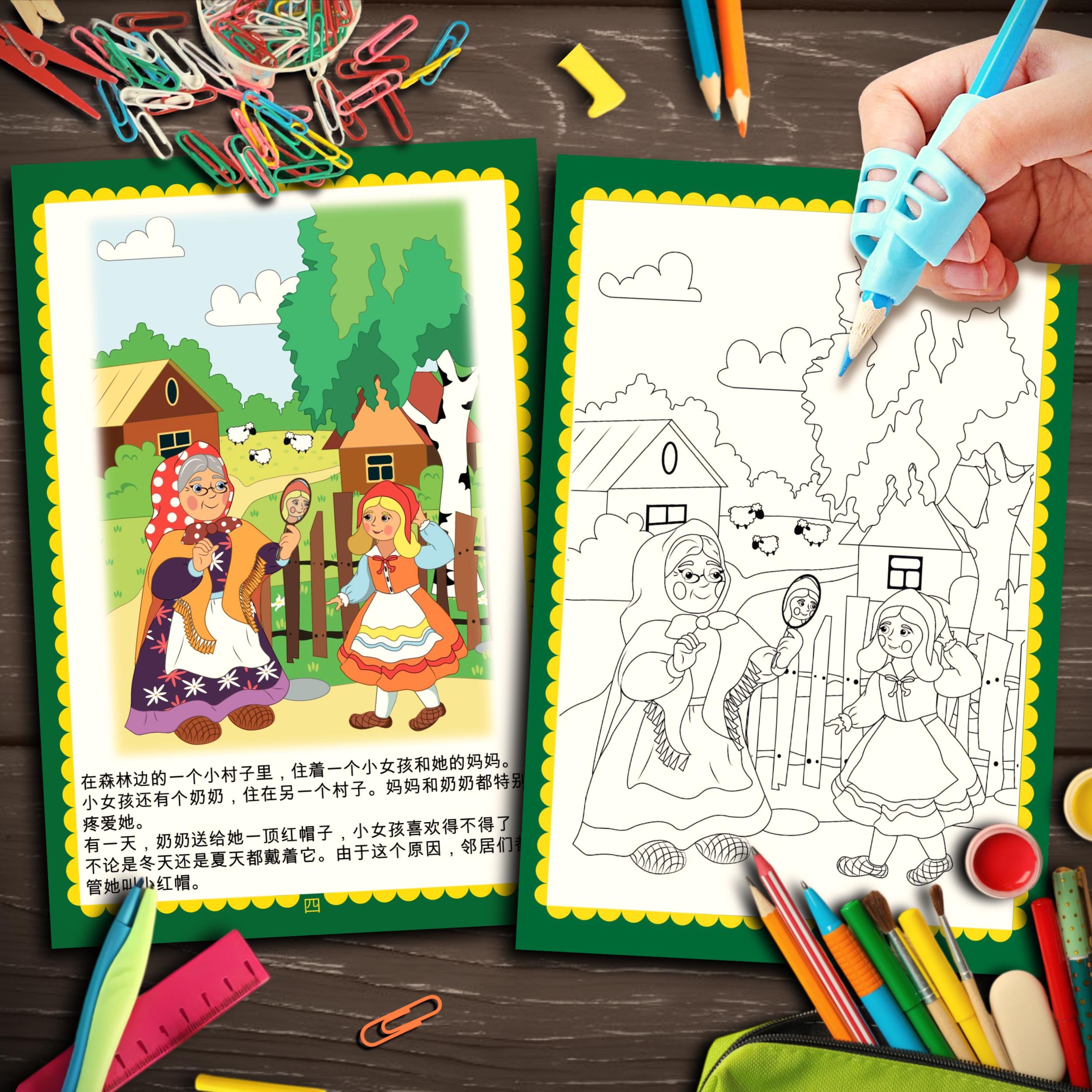 Little Red Riding Hood | PDF Fairy Tale Coloring Book | 34 Pages | Kids Activity | Original Art | Bilingual: English & Chinese