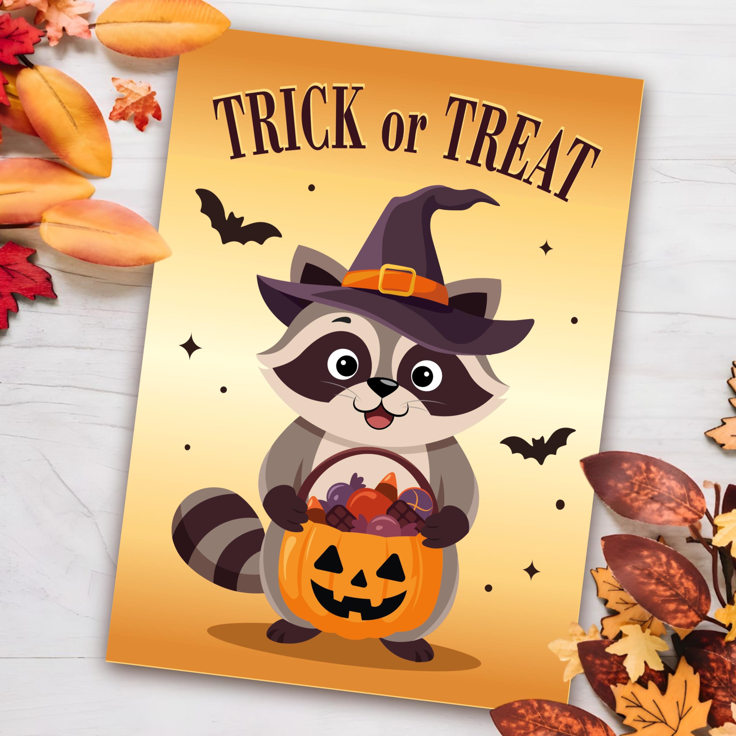Greeting Card – Trick or Treat | A6 Format | Vector Illustration | Halloween | Autumn | Printable Art | Mini Print | Digital Download PDF