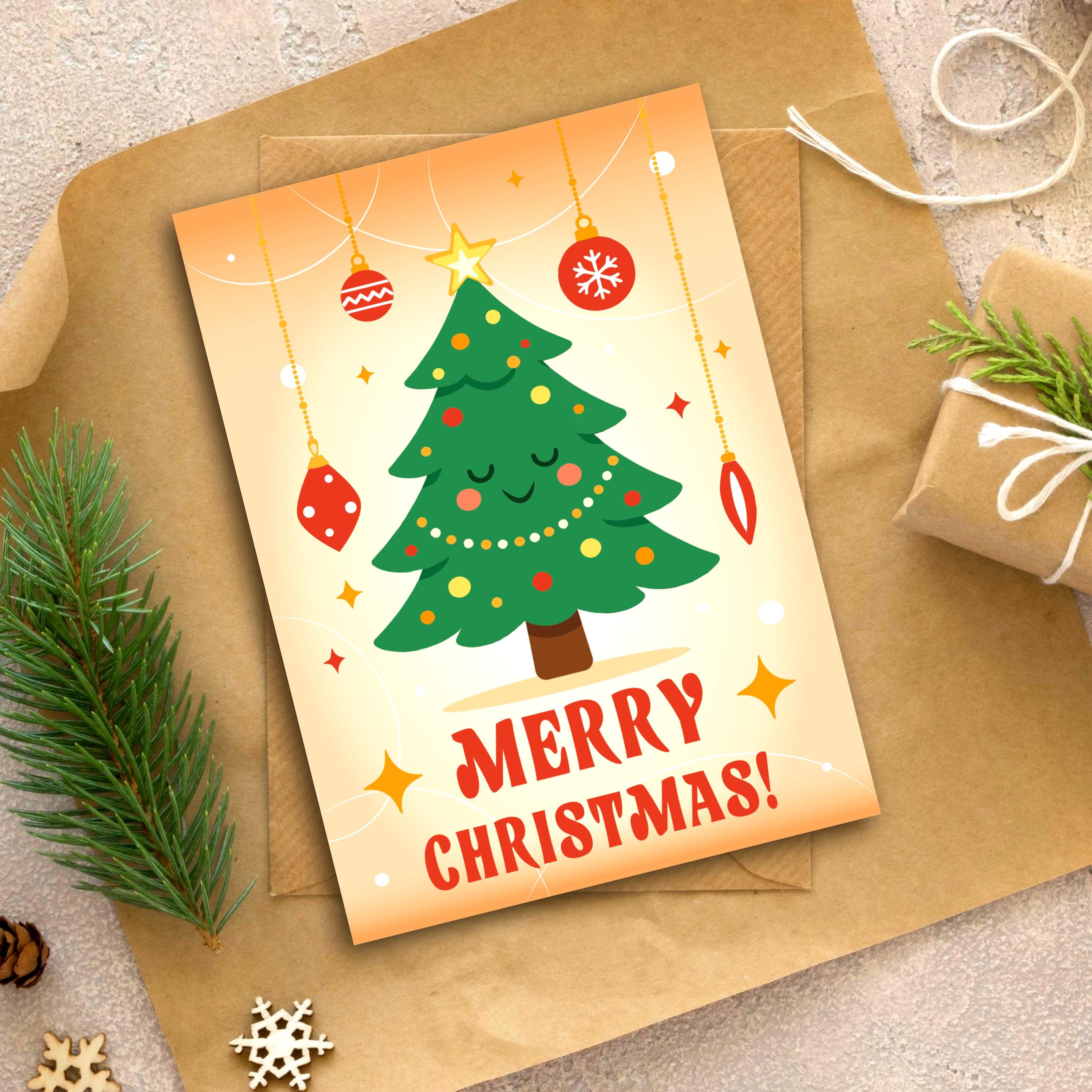 Greeting Card – Christmas Tree| A6 Format| Vector Illustration| New Year| Merry Christmas| Printable Art | Mini Print | Digital Download PDF