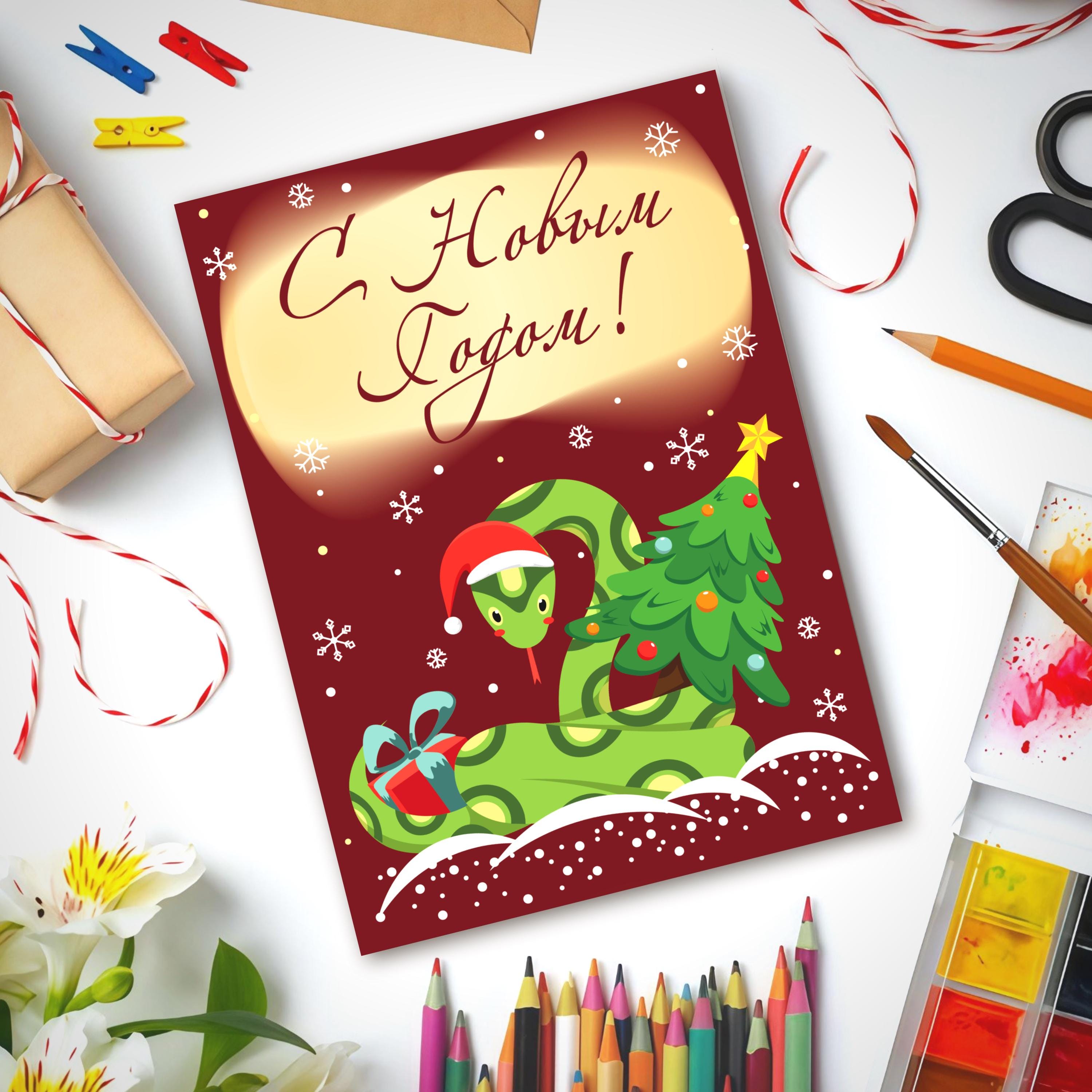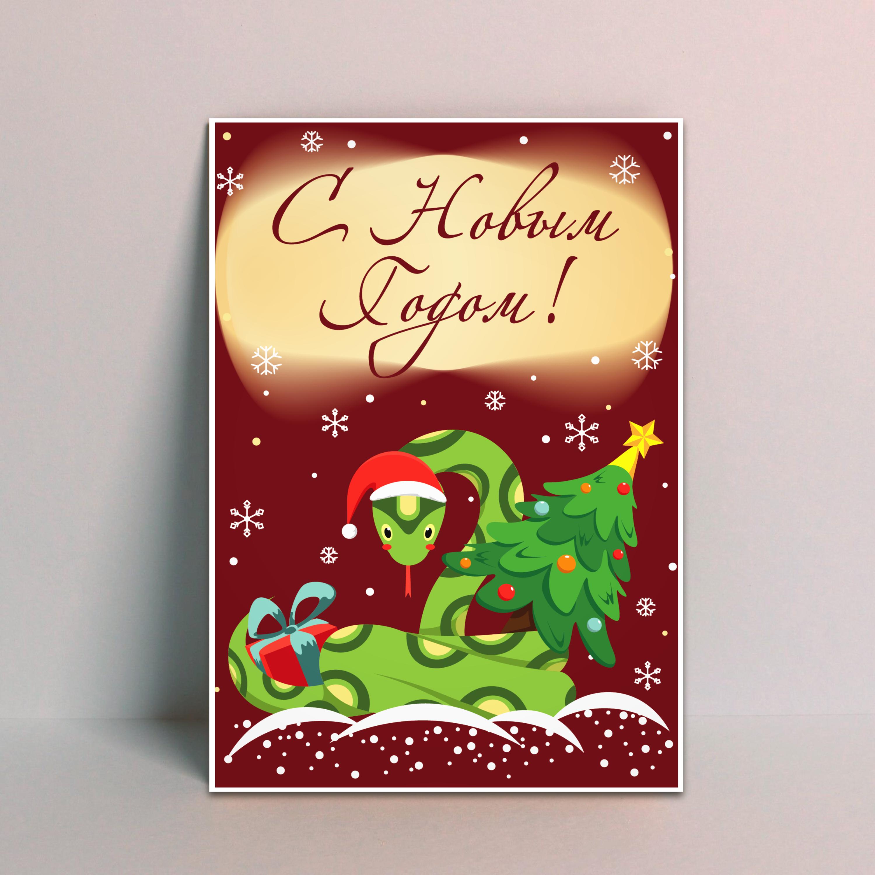 Greeting Card – New Year Snake | A6 Format| Vector Illustration | New Year| PDF Digital Download | Printable Art | Mini Print| Greeting Card