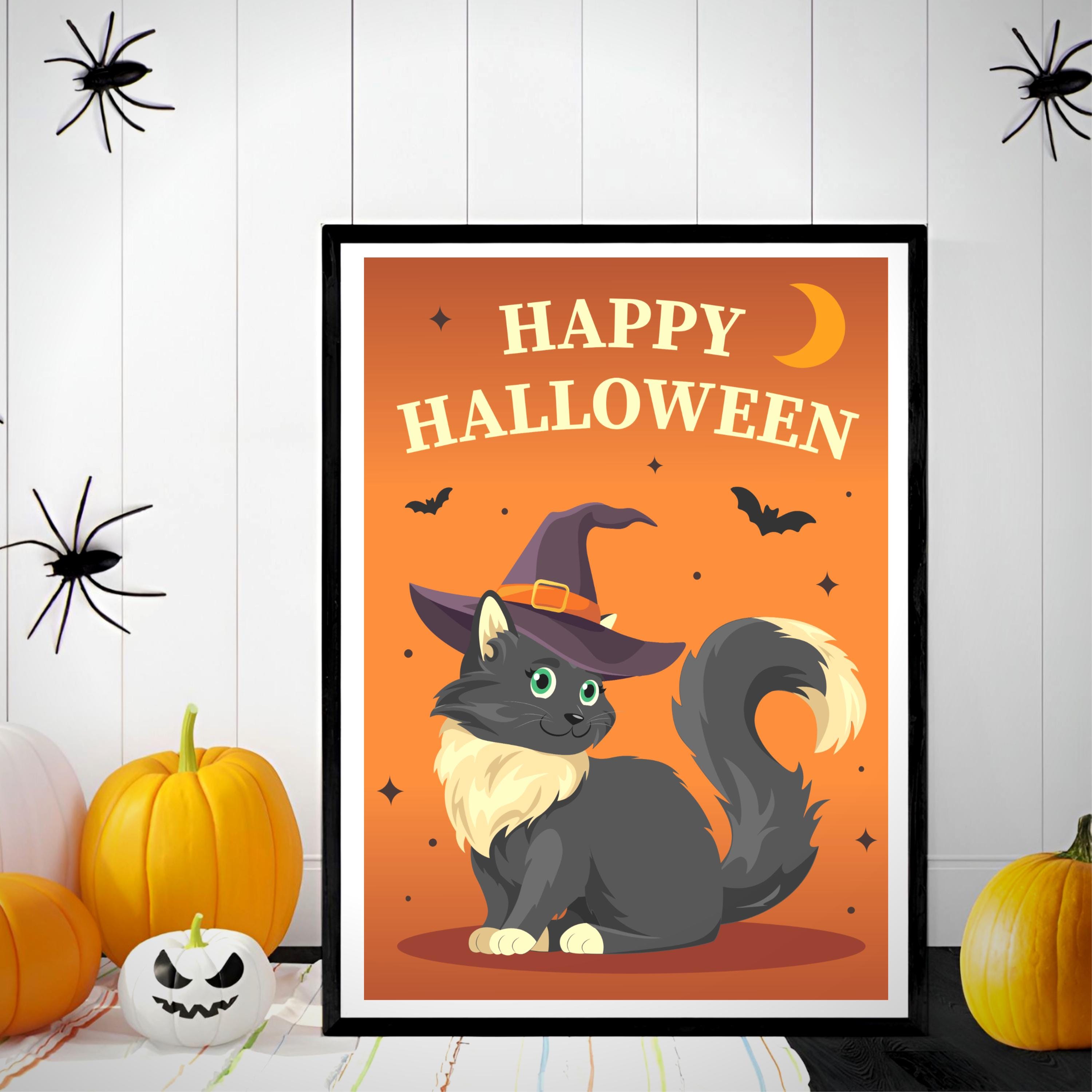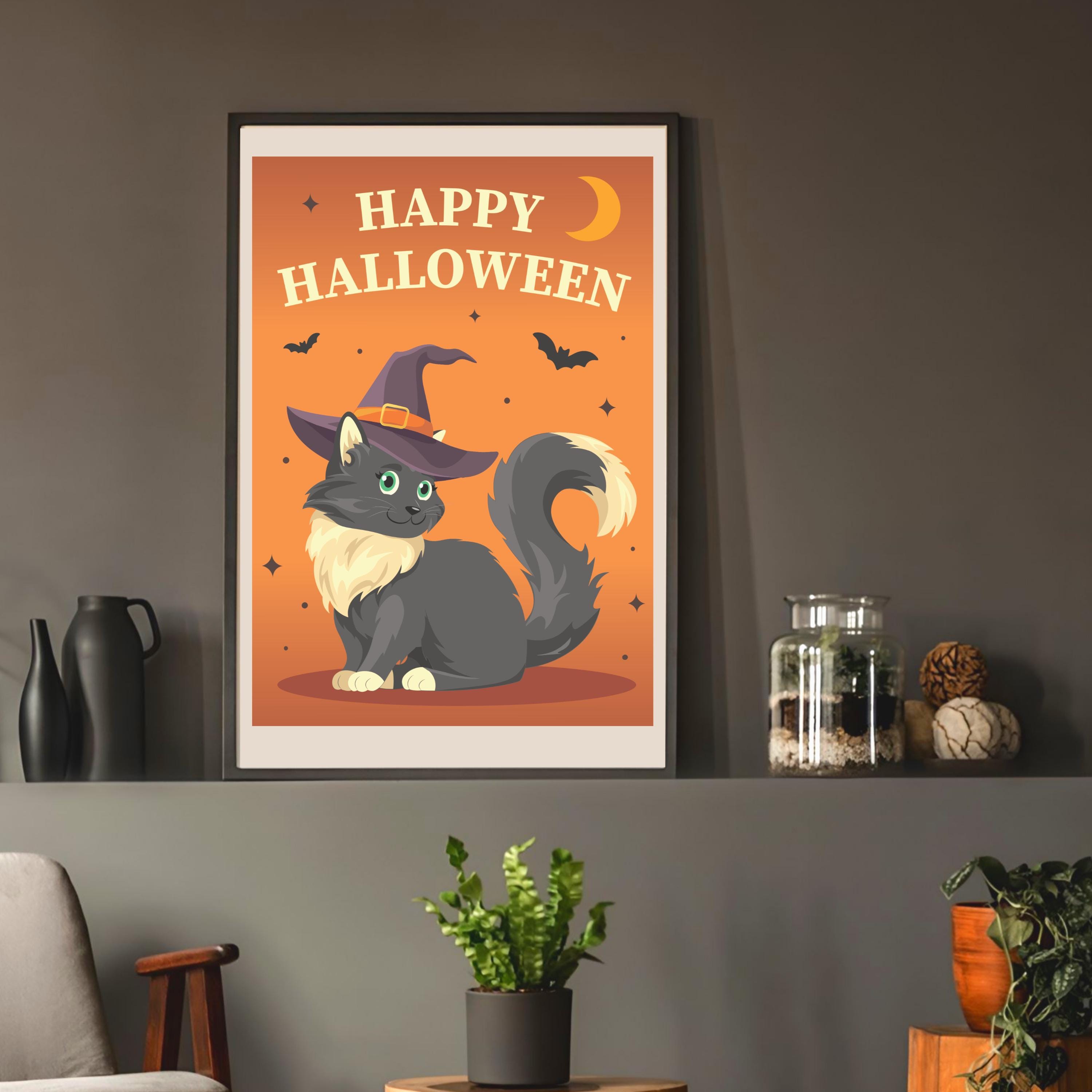 Poster – Cat – Room Decor | Halloween | A3 Format | Vertical | Vector Illustration | Printable Art | Digital Download PDF | Homedecor