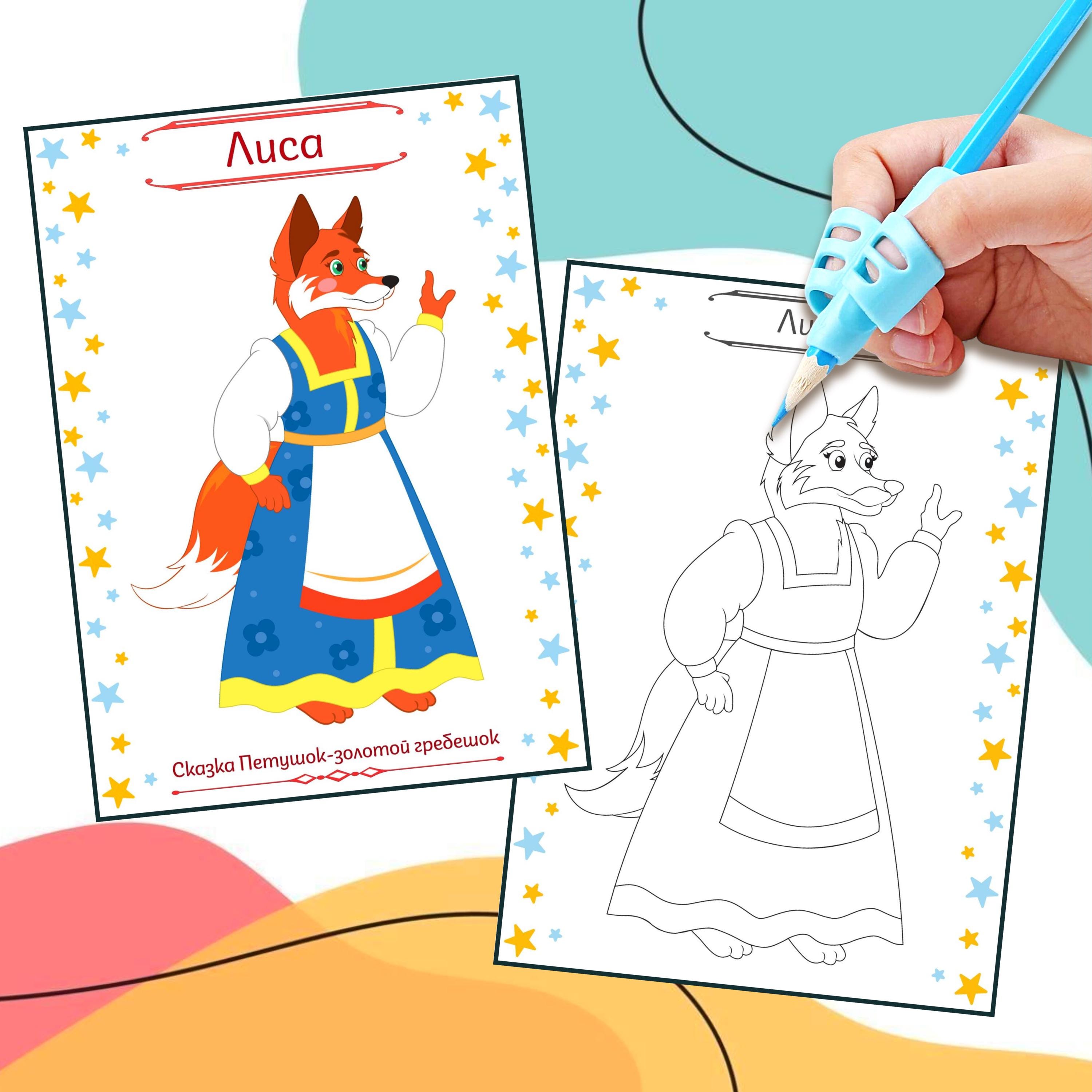 Coloring Book Rooster - Golden Comb | Fairy Tale Characters | 12 Pages| Kids Activities | Russian Tale | Printable Art| Digital Download PDF