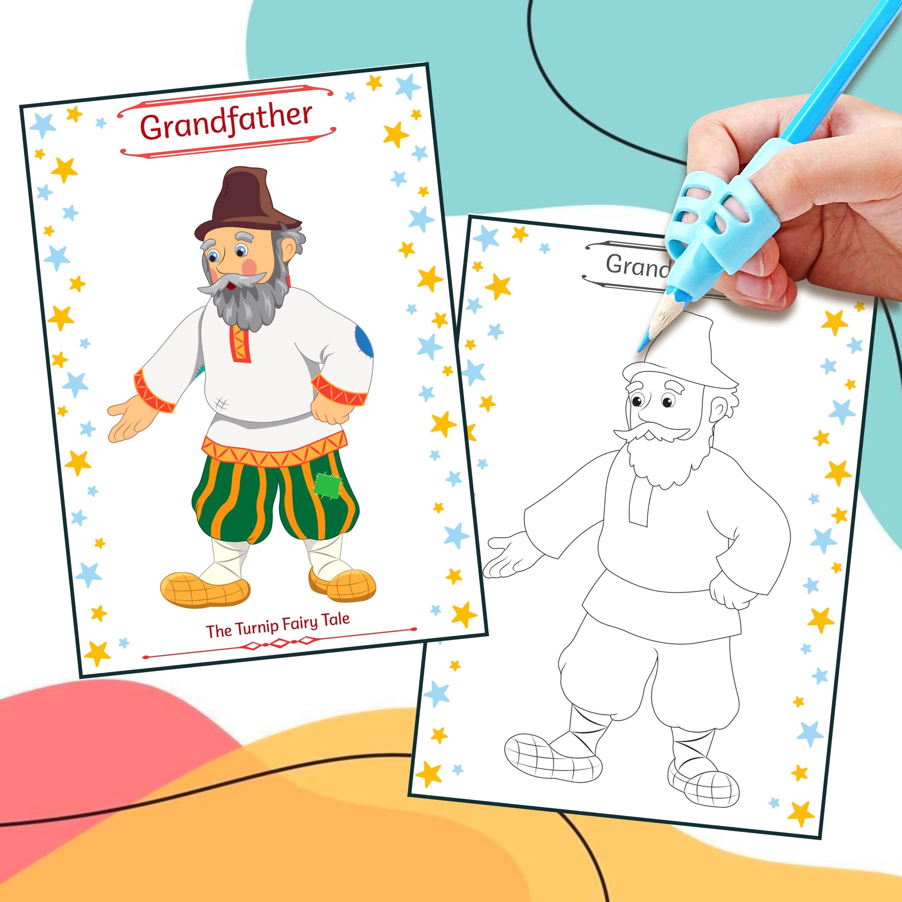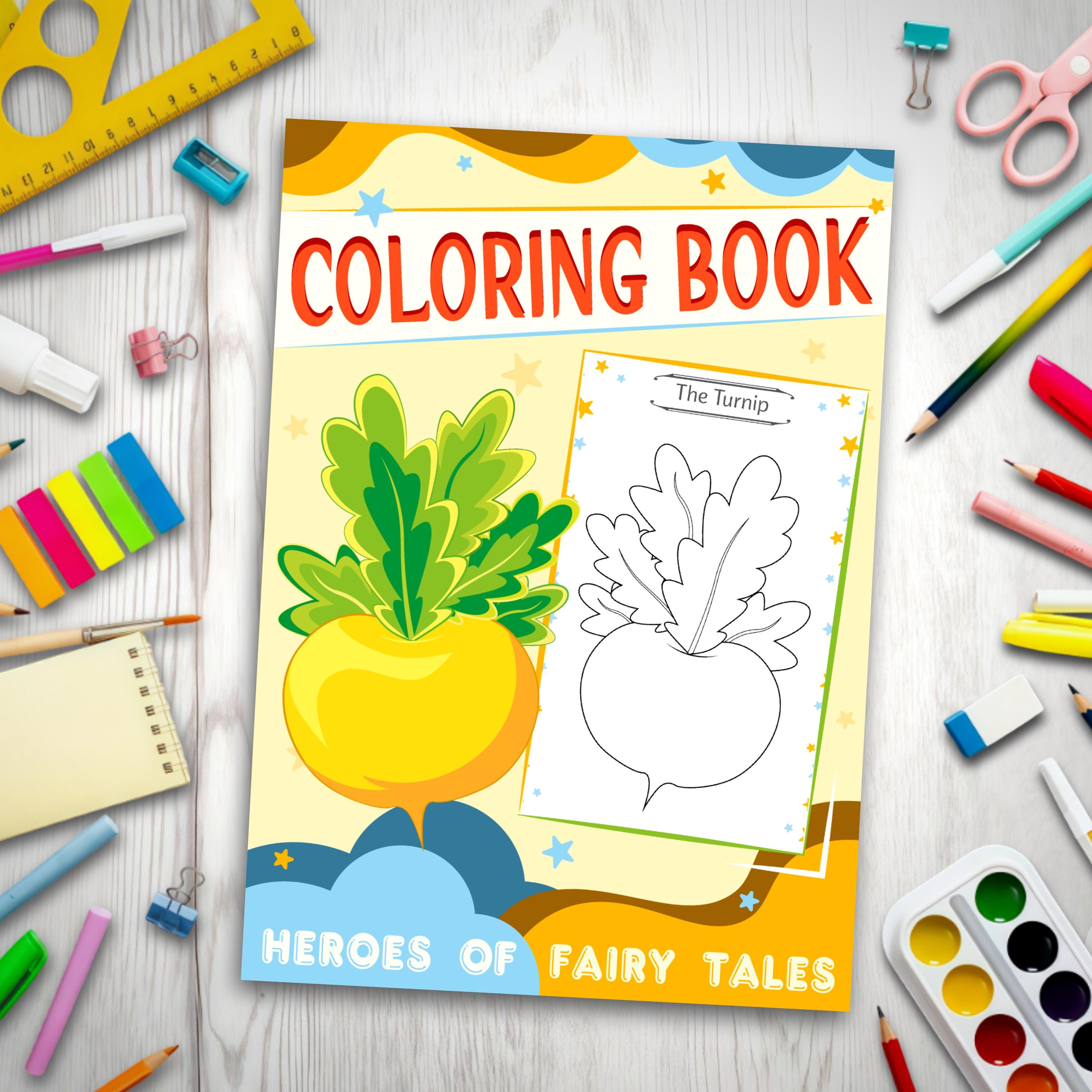 Coloring Book – The Turnip – Fairy Tale Characters | 16 Pages | Kids Activities | Russian Folk Tale | Printable Art | Digital Download PDF