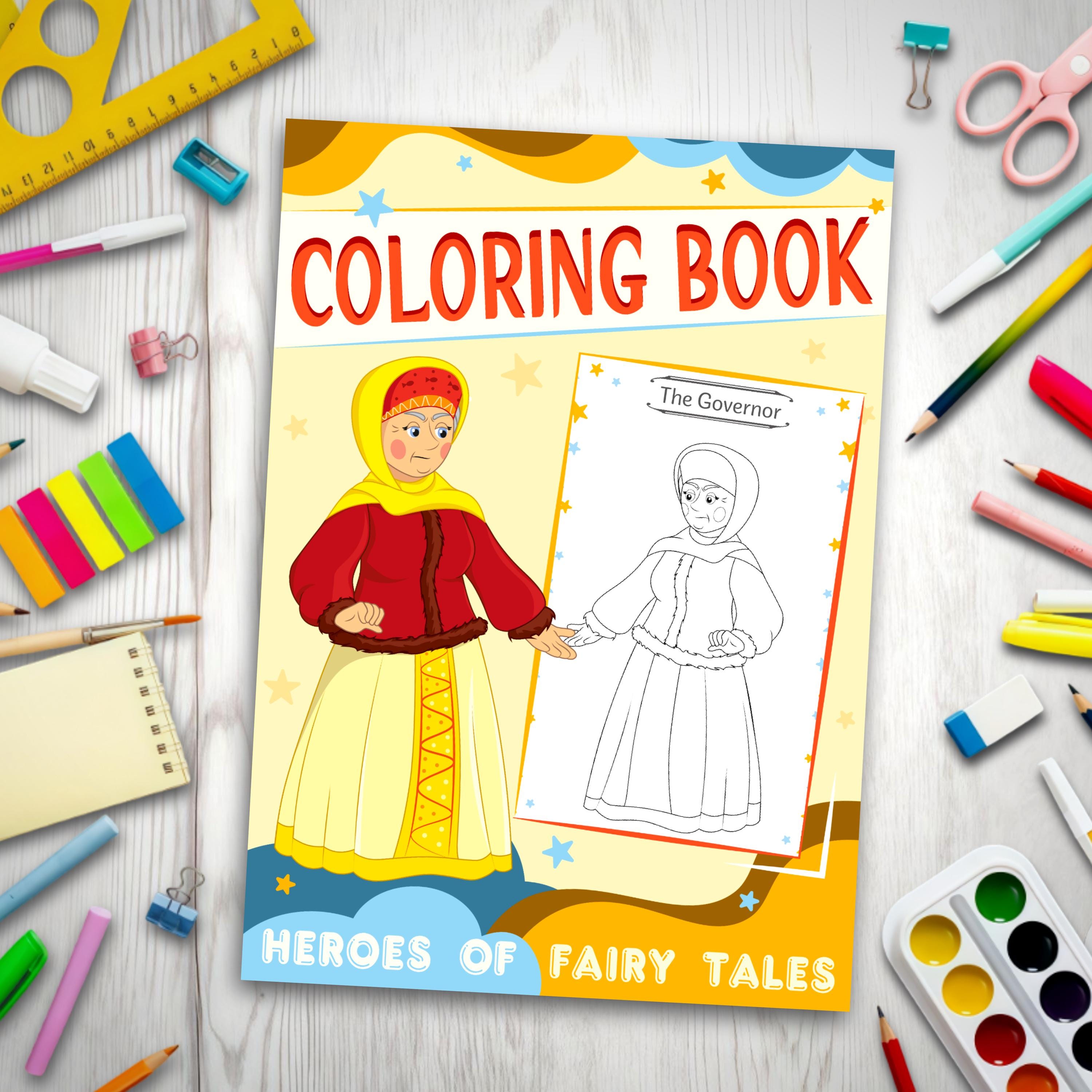 Coloring Book - The Goldenfish - Fairy Tale Characters | 12 Pages| Kids Activities | Russian Folk Tale| Printable Art | Digital Download PDF