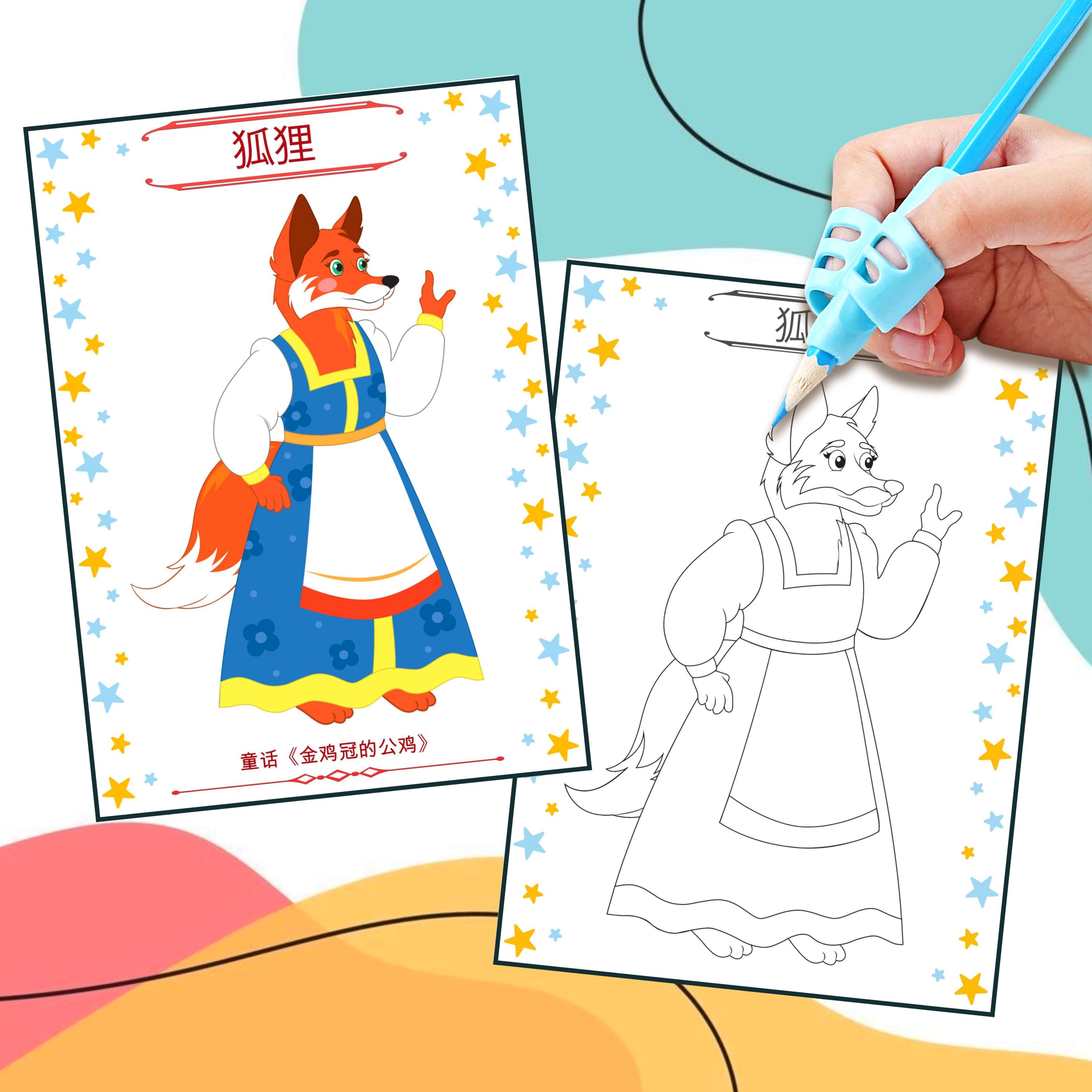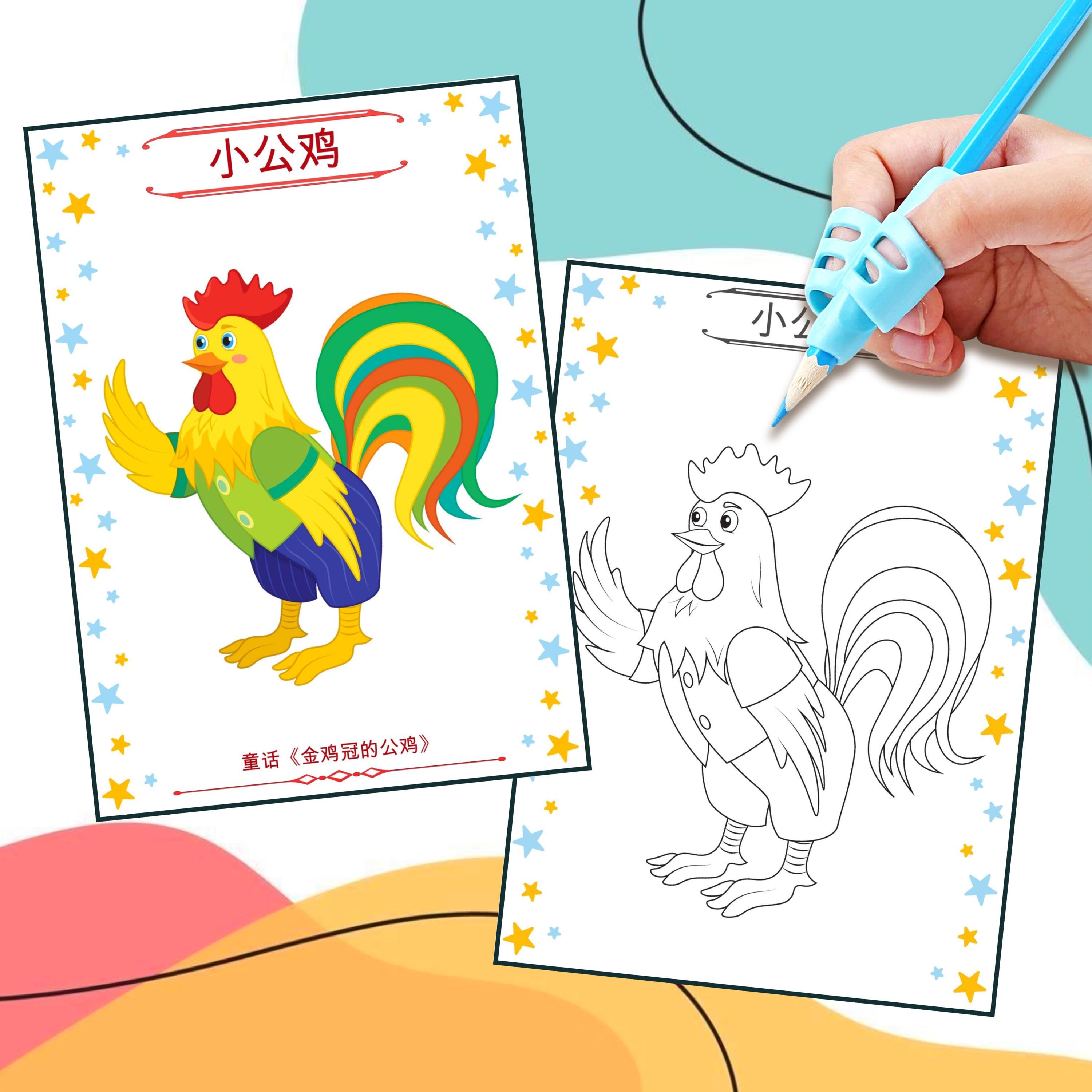 Coloring Book Rooster — Golden Comb Fairy Tale Characters| 12 Pages | Kids Activities | Russian Tale | Printable Art | Digital Download PDF